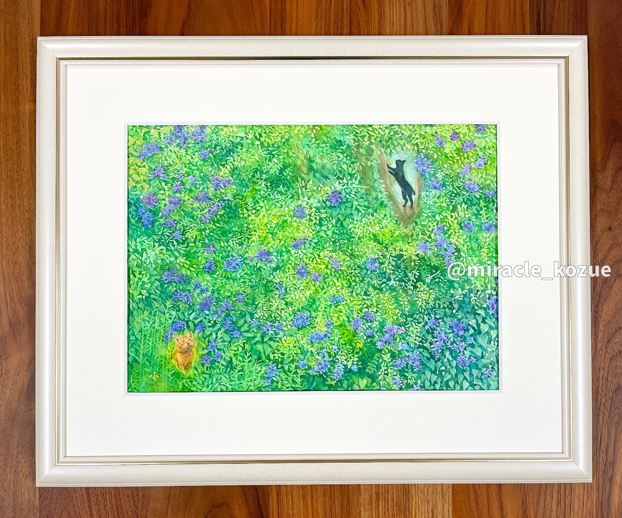 【水彩画】『デュランタの森で(小太郎&くろのJourney series)』F4号